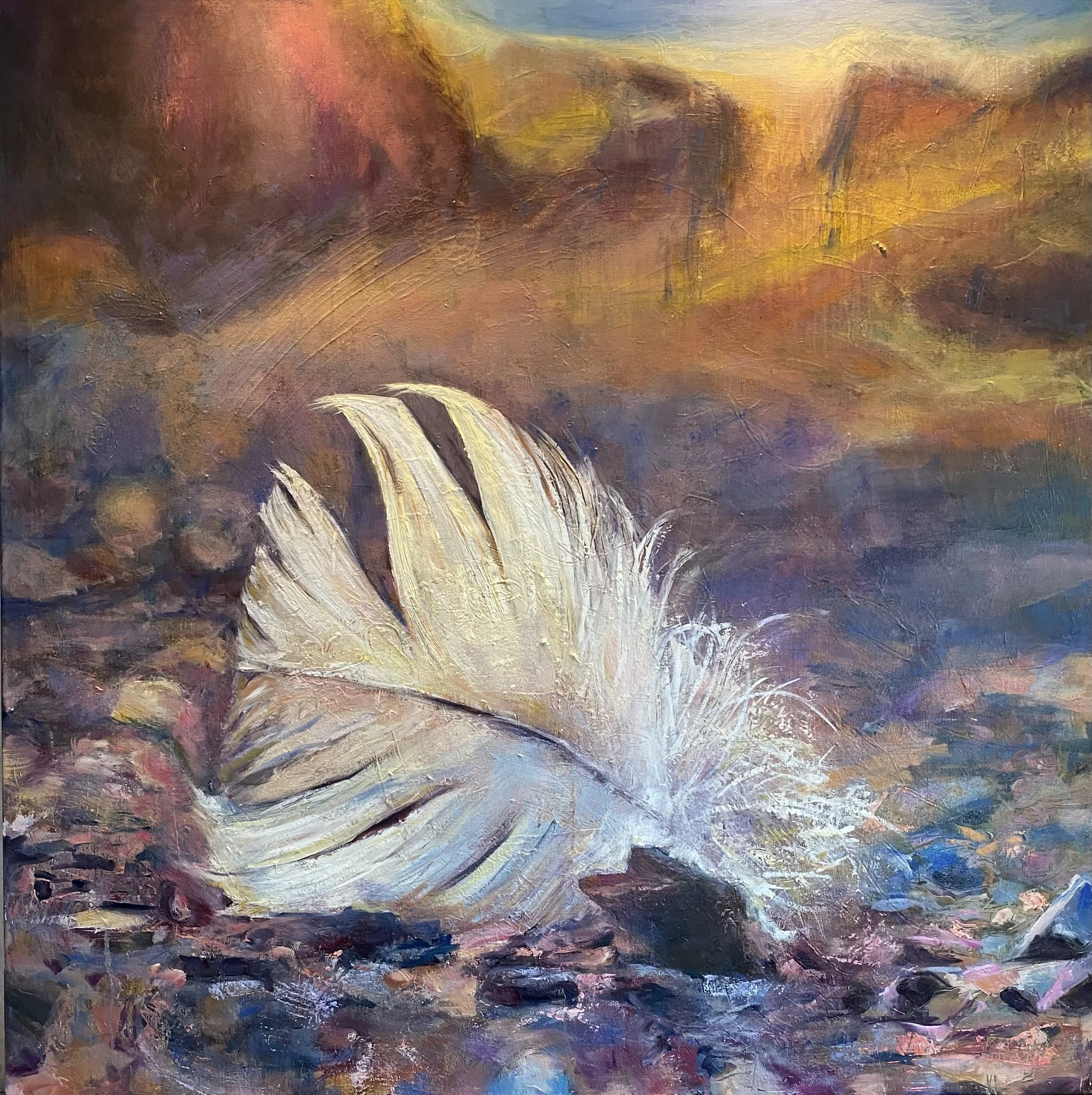 100 cm x 100 cm (39” × 39”) Original oil painting on ready to hang gallery wrapped canvas.